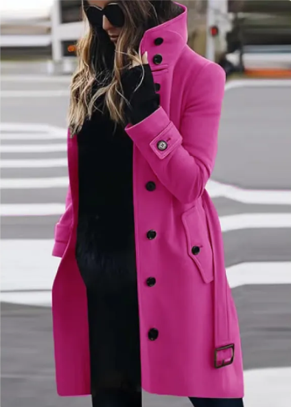 Der Liora Wollmantel kombiniert eine schlanke, figurbetonte Silhouette mit einem modernen Stehkragen und einer hochwertigen Wollstruktur. Perfekt für Herbst, Winter und kühle Frühlingstage.